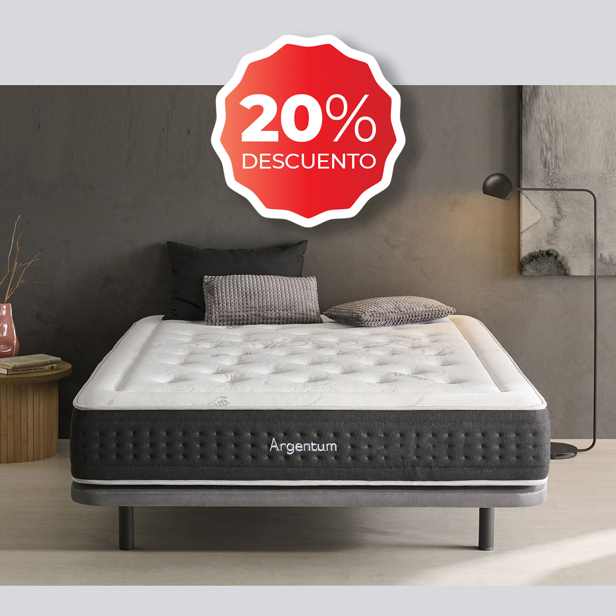 El colchón Argentum Serie 100 combina innovación y confort para ofrecer un descanso fresco y saludable. Su tejido Strech con hilo de lúrex aporta un extra de higiene y transpirabilidad, mientras que los 8 cm de Viscogel proporcionan una acogida adaptable y ayudan a regular la temperatura durante la noche.