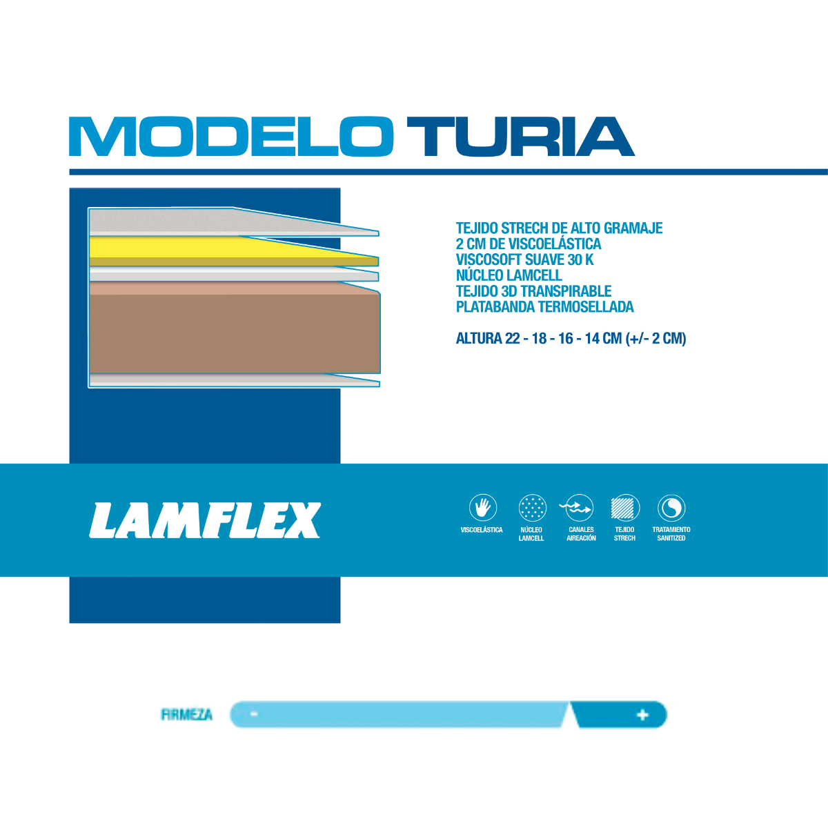 El colchón Turia se fabrica en varios grosores para adaptarse a diferentes tipos de camas, somieres y necesidades: